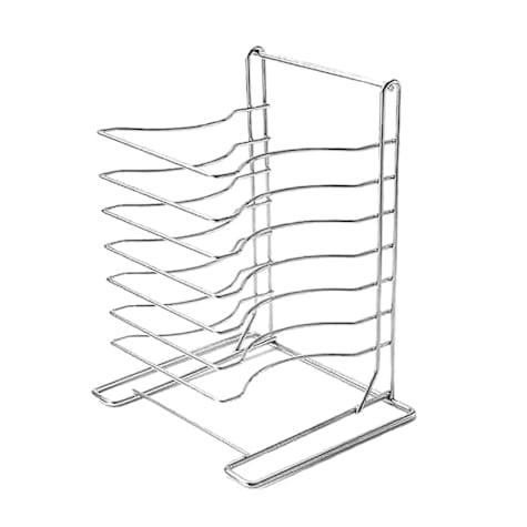This seven tier pizza rack from American Metalcraft features stainless steel construction and mounts on a wall to save space!