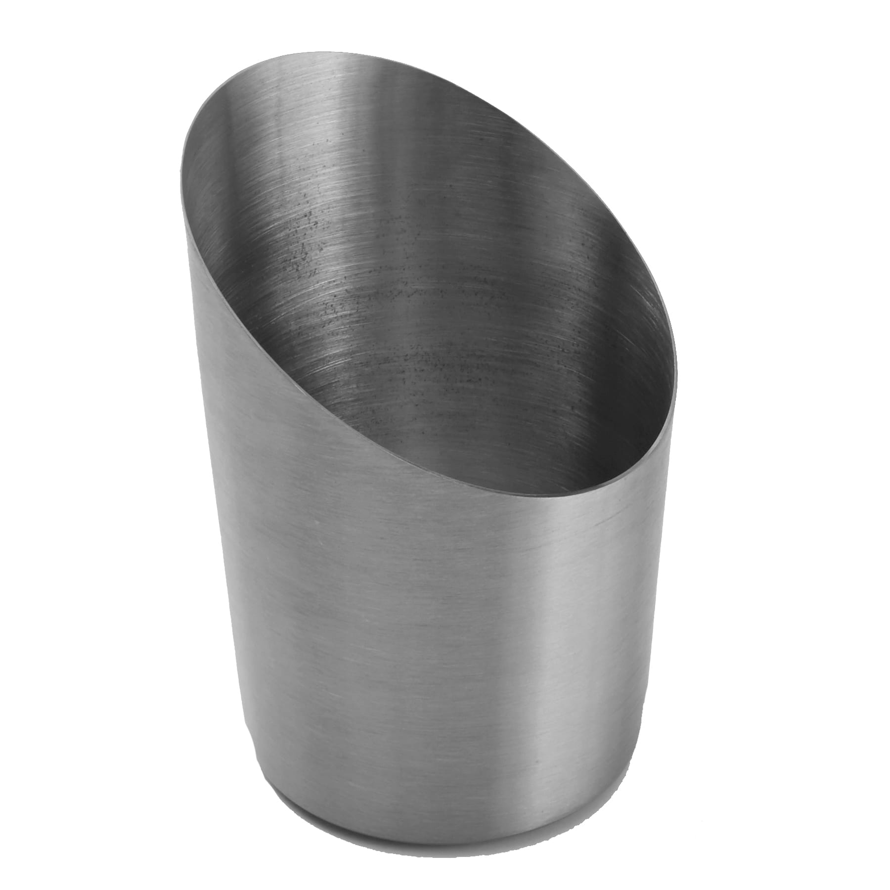 The angled design of this American Metalcraft fry cup gives it a modern look. The satin finish adds elegance. Great for appetizers.