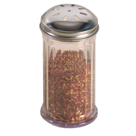 This clear SAN plastic spice shaker is practically indestructible and stain resistant. Great for pizza spices.