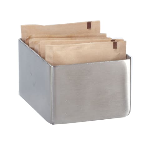 This satin finish, stainless steel sugar packet holder from American Metalcraft has a sleek, modern look that works well at any occasion.