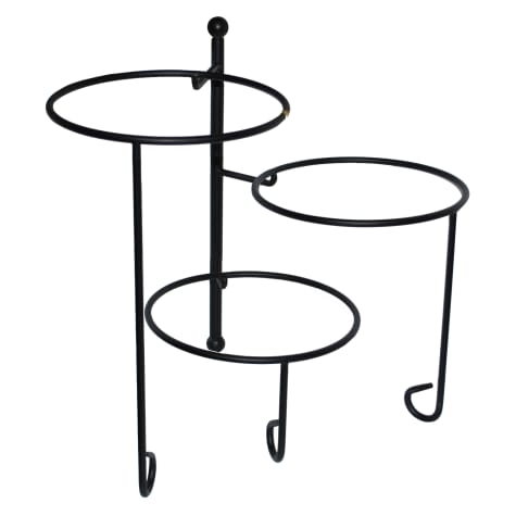 This 3-tier stand opens up to 24" inches wide and stands 16-1/2" high. It's made from sturdy wrought iron with curled feet.