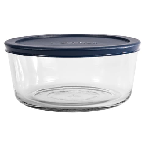 This Anchor Hocking® Round Kitchen Storage Bowl is made from clear glass and includes a blue plastic lid. It has a 7 cup capacity and is great for holding a variety of items. This bowl is oven, microwave, and freezer safe. It is also dishwasher safe for easy clean-up.