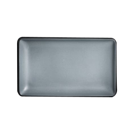 This Anfora Denali Matte Gray 10" x 6" rectangular platter has hand‐crafted glaze application to ensure it has a unique look.