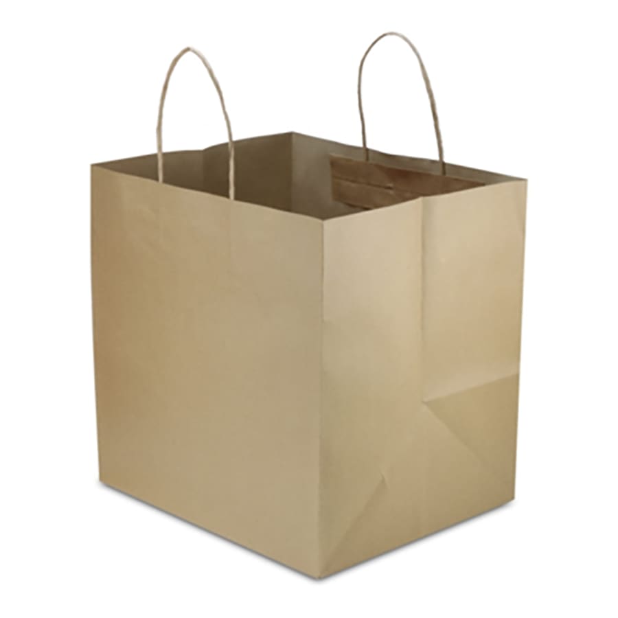 This Kraft paper shopper bag has strong, easy to hold twist handles and are great for taking home groceries, beverages, or take‐out foods.
