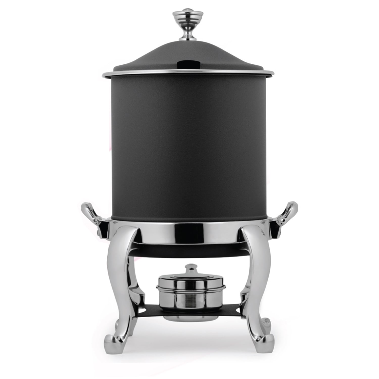 The Bon Chef 39001HLCH‐NERO Elite marmite features a narrow, space‐saving design and an elevated shelf for a fuel cell. The lid features an indent that allows for a ladle making it easy to serve your favorite soups, sauces, or gravies.