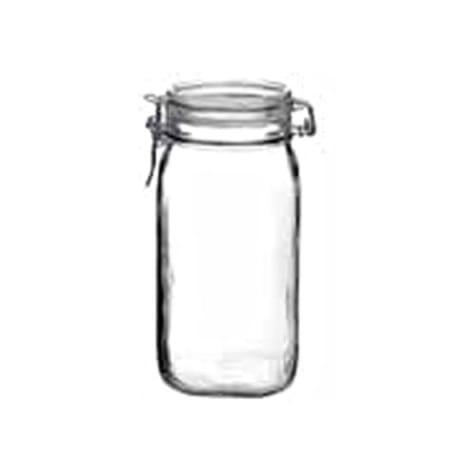 This Bormioli Rocco 54.75 ounce Fido Jar is made from clear glass and has a clamp lid to keep contents secure. This jar is ideal for storing dry goods, liquids, packaged snacks, and more. It has a 54.75 Oz. capacity.