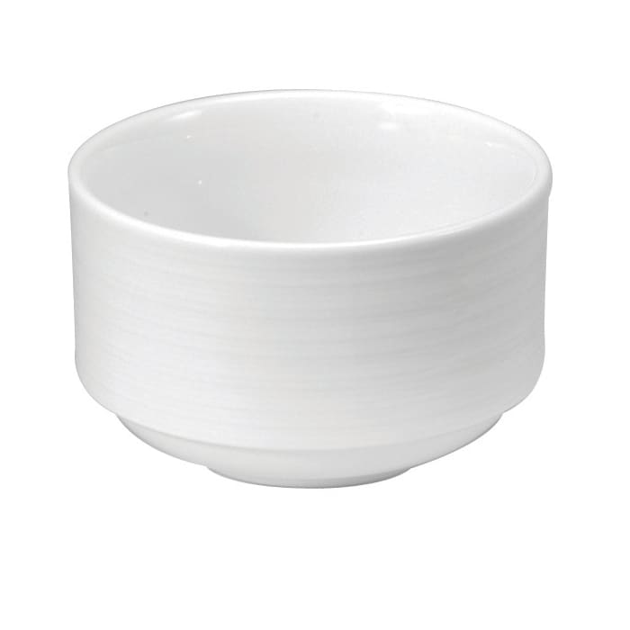 This 9 ounce bouillon cup from 1880 Hospitality is part of the Botticelli Collection and features embossed hand‐carved textures. The bright white porcelain construction will blend with any table setting and appeals to both casual and fine dining settings.