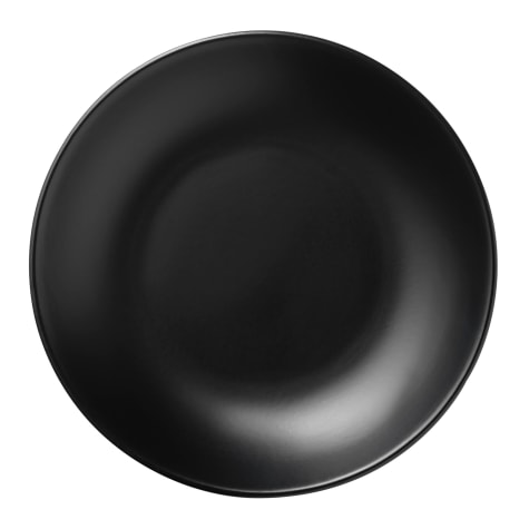 This Driftstone black 10" coupe bowl from World Tableware features a satin matte finish and is fully vitrified. It is oven safe to 350°F.