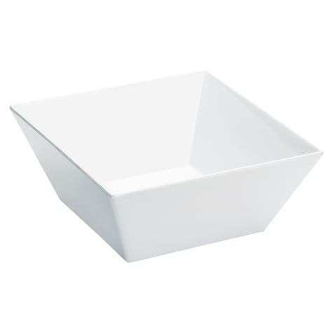Add a modern look to your food presentation with this 12" square bowl from Cal‐Mil. This large bowl has a capacity of 6 quarts and the crisp edges and white color make it a perfect vessel for your delicious creations. The melamine construction allows for extra durability and is a great choice for restaurants of buffets.