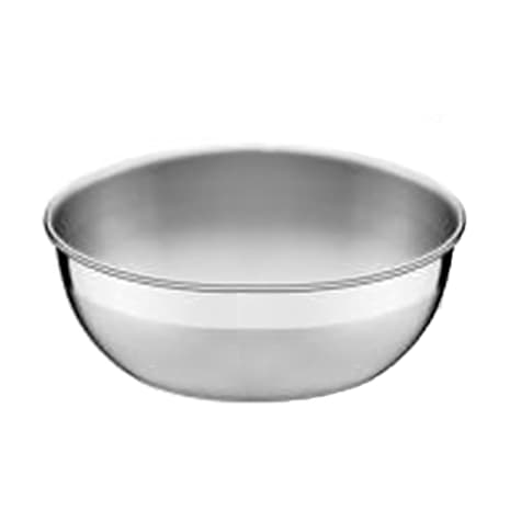 This 4.5 quart mixing bowl features 18/10 stainless steel construction with a satin finish and a mirror polished upper band. This mixing bowl also comes with a cover.