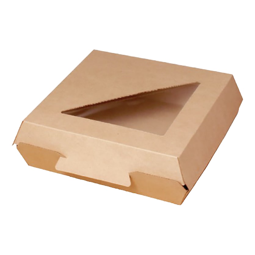 This hinged box from Darling Foodservice features a window top and is perfect for showcasing freshly baked pastries, gourmet sandwiches, or artisanal treats!