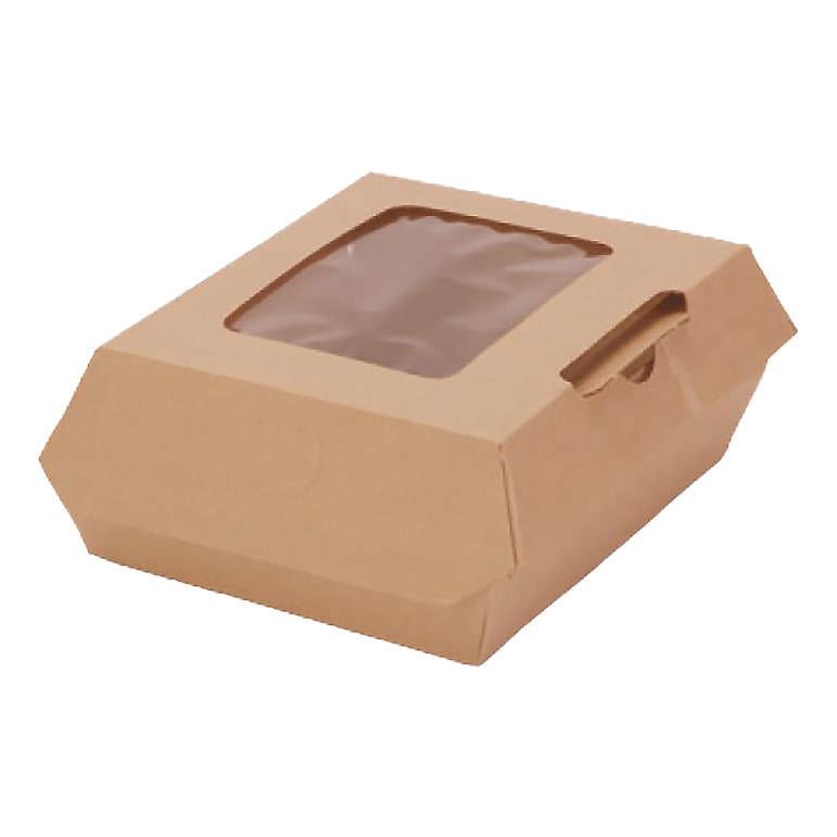 This hinged box from Darling Foodservice features a window top and is perfect for showcasing freshly baked pastries, gourmet sandwiches, or artisanal treats!