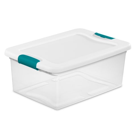 This 15 quart latching box from Sterilite® features a modern space saving shape and an innovative hinging lid. Simply undo one latch and lift the lid for easy access, all with one hand. The other latch stays attached and acts as a hinge, even when the lid is opened all the way. It is ideal for storing shoes, toys, crafts and other small items. The recessed lid allows same size storage boxes to stack neatly on top of each other to use vertical storage space efficiently.