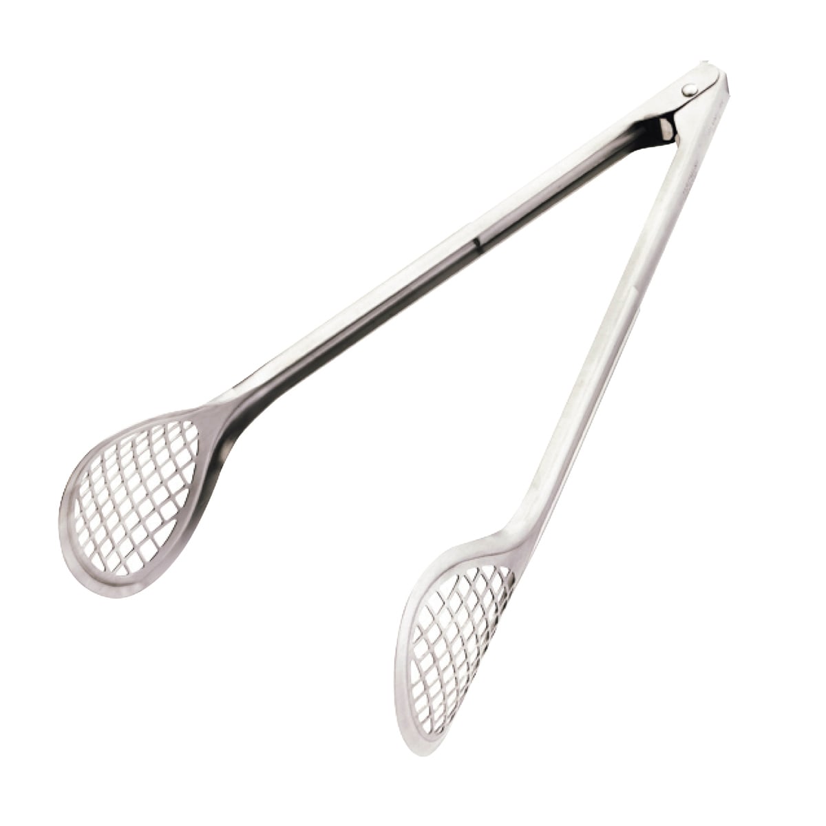 These Browne Foodservice tongs have a wide tip that allows you pick up larger food items like hamburgers, steak, or fish. The perforations allow for draining of oils and fats.