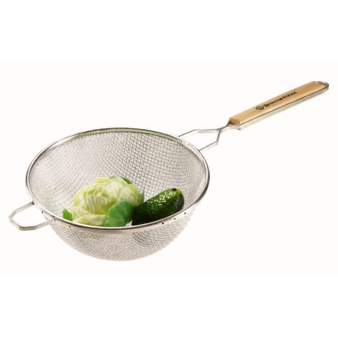 This Browne Foodservice fine double mesh strainer will keep seeds and lumps out of gravy and sauces.