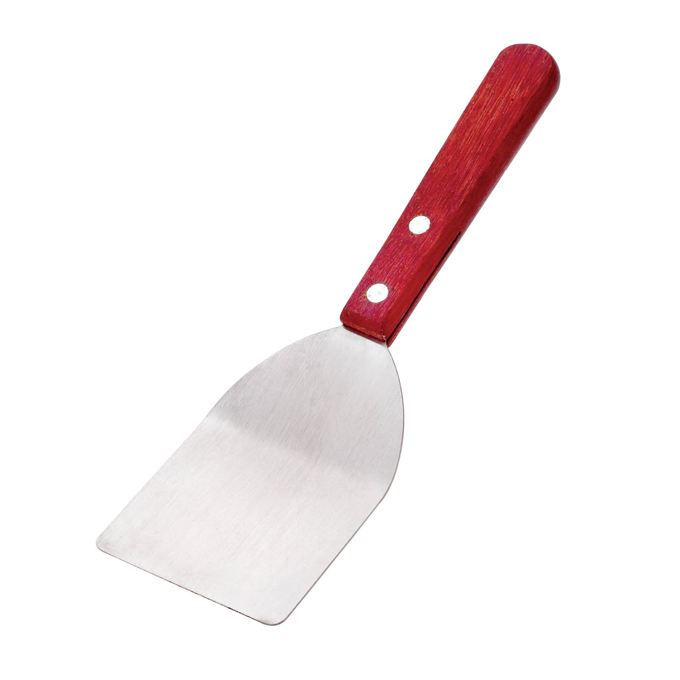 This all‐purpose spatula from Browne Foodservice features a hardwood handle and a 3.5" x 2" stainless steel blade. The wood handle stays cool to the touch. Perfect for use in restaurants, cafeterias or diners.