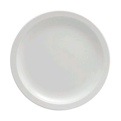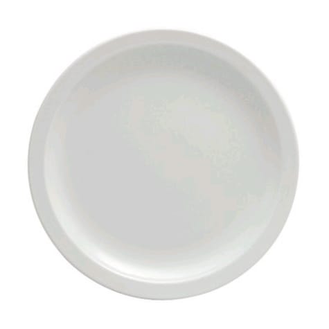 This plate from 1880 Hospitality is part of the Bright White Ware pattern and is a perfect choice for serving main entrees. It features clean lines and a narrow rim. This plate is 9.5" round and has a bright white porcelain body. The reinforced edge of this plate makes it a great option for use in restaurants or hotels. This plate also has a 1 year no chip warranty.