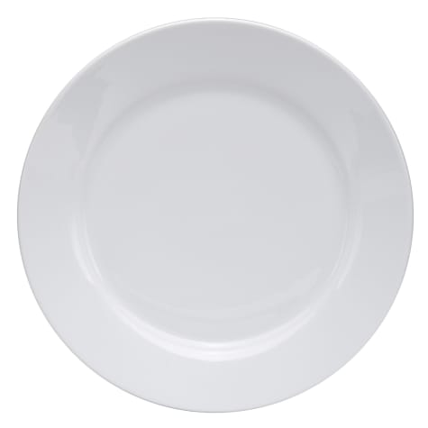 This round white plate from 1880 Hospitalityfeatures a bright, white porcelain body and a hard, scratch‐resistant glaze. It is 11" round and the white color will blend with any table setting. Perfect for serving main entrees in restaurants, diners or banquet facilities.