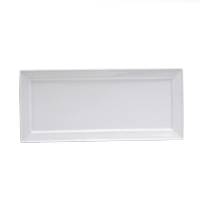 This rectangular platter from 1880 Hospitality is 14.25" x 6.25" and is perfect for serving appetizers or main entrees. It features a bright, white porcelain body and a hard, scratch‐resistant glaze. The rectangular shape of this platter will add a modern look to any dining area and is perfect for use in restaurants, diners or hotels.