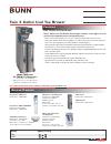 This BUNN® Twin Tea Brewer makes up to 26.7 gallons of real tea an hour and can hold up to 3 gallons of tea in each of its dispensers. This brewer comes with a SplashGard® funnel which protects hands from hot water, and color coded decals to properly align the equipment. This BUNN® brewer is UL/NSF listed.