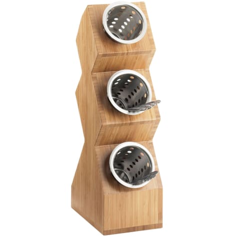 This cylinder display from Cal‐Mil holds 3 cylinders and is perfect for condiments, packets and flatware. It features a durable, bamboo body and the cylinders can be removed for easy cleaning.
