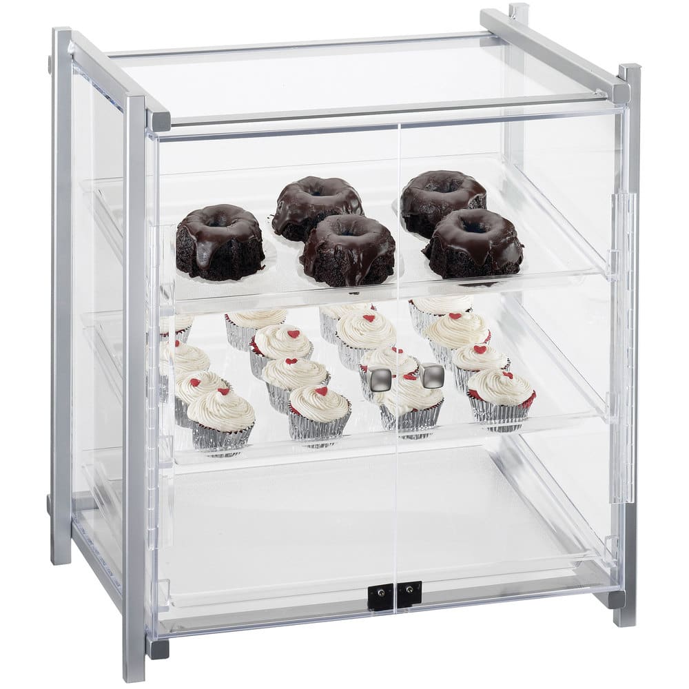 This self serve display case from Cal‐Mil is made with ex ceptional durability and the 3 tier design optimizes product placement. This silver display case includes three 13" x 18" trays and is perfect for cafeterias, buffets or breakfast bars.