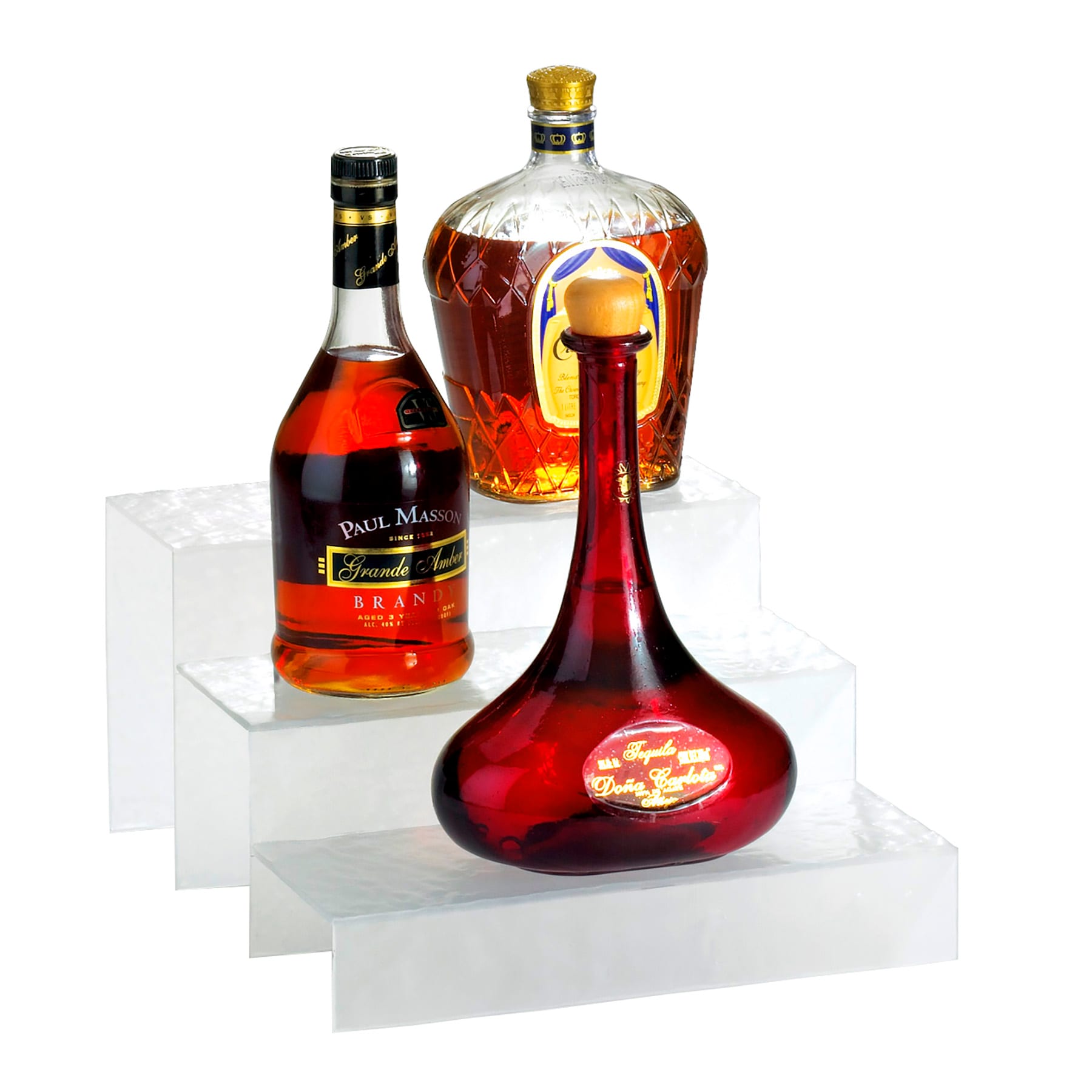 This bottle display from Cal‐Mil is perfect for use in restaurants and bars. It allows you to display a generous assortment of bottles, and the three tiers provide multiple levels to show off all of your liquor bottles to their best advantage. This bottle display is a crystal ice color and is 12" wide.