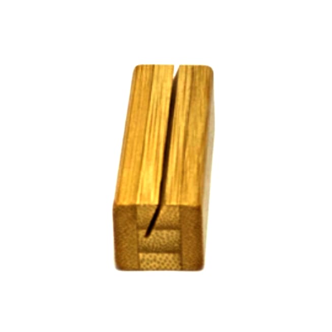 This business card size card holder from Darling Foodservice features bamboo construction and is great for labeling chafer contents, displaying table numbers or marking reserved tables.