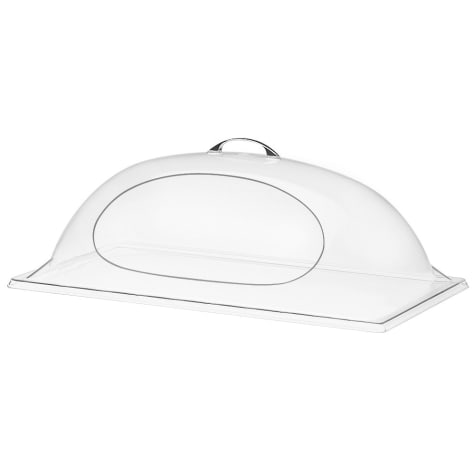 This Cal‐Mil dome cover is made of durable polycarbonate, and has one side open.