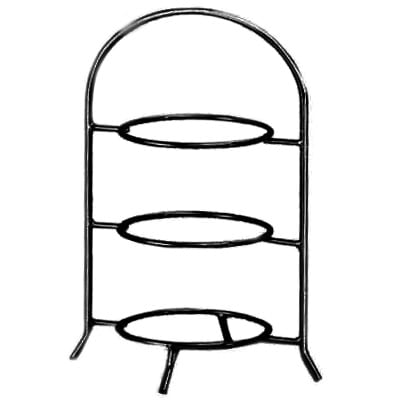 This Cal‐Mil 3‐tier display features a steel wire frame that has the look of wrought iron. It holds plates or bowls with a 12" diameter and has rubber feet to protect countertops. Ideal for displaying pastries or appetizers.