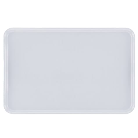 This 18" x 26" rectangular lunch tray in steel white is made of sturdy, economical fiberglass with reinforced edges, making it a good choice for high‐traffic self‐serve dining rooms where it is likely to take a beating.