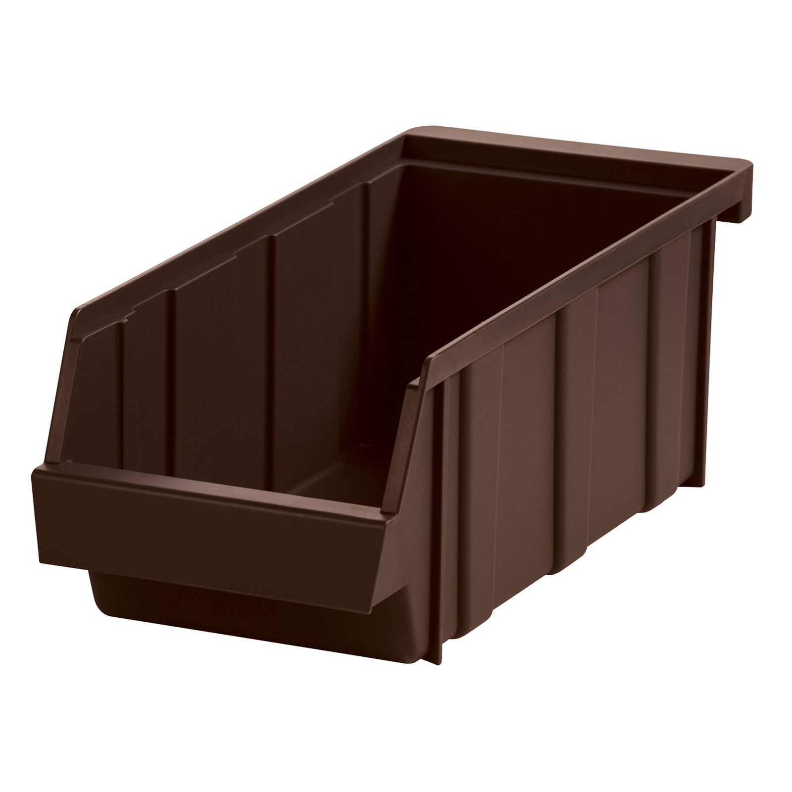 This dark brown bin goes with all sizes of Versa organizer racks and will hold up to 10 pounds when the rack is wall mounted.