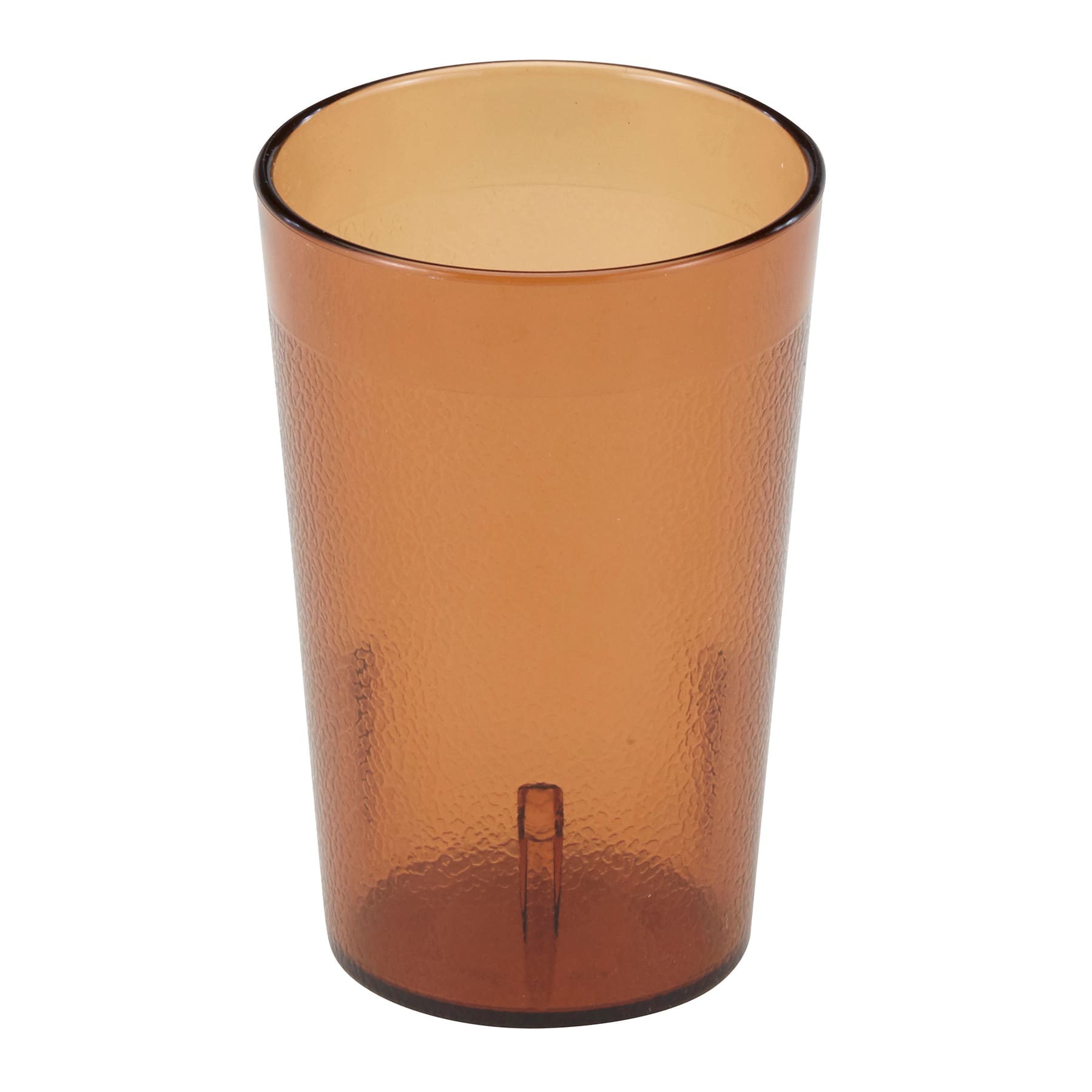 This amber 7.8 ounce Colorware tumbler is made of durable, impact‐resistant SAN plastic with a scratch‐resistant exterior and a smooth, easy‐to‐clean interior. Its light weight and toughness make it perfect for casual dining establishments, school cafeterias, day care facilities, and any other environment where it would see heavy use. This tumbler also has a Sani‐Rim lip that provides a sanitary drinking surface.