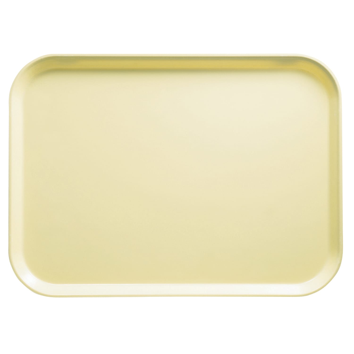 This 8" x 10" rectangular serving tray in lemon chiffon is made of lightweight, high‐impact fiberglass and features reinforced edges for extra durability.