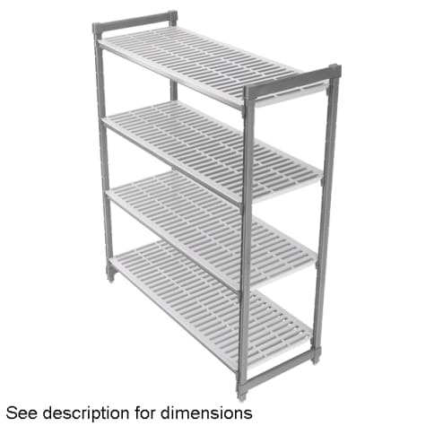 Camshelving® 21" x 60" x 72" 5‐shelf vented starter shelf kits are perfect for use in any environment, indoors or outdoors, including walk‐in coolers and freezers, dry storage, wet areas or front of the house display. This kit comes with two steel‐core, weight‐bearing traverses and several vented shelf plates which combine to form a single shelf. Works in temperatures down to ‐36°F (‐30°F) or warm environments up to 190°F (88°C). Camshelving® vented plate kits are perfect for when you need to store perishable products that benefit from air flow around them.The shelf plates and the outer shell of the traverses are made of smooth, rustproof polypropylene that can be cleaned simply by wiping it off, and Camguard™ antimicrobial protection is built right into the shelf plates to extend your food's shelf life even longer.
