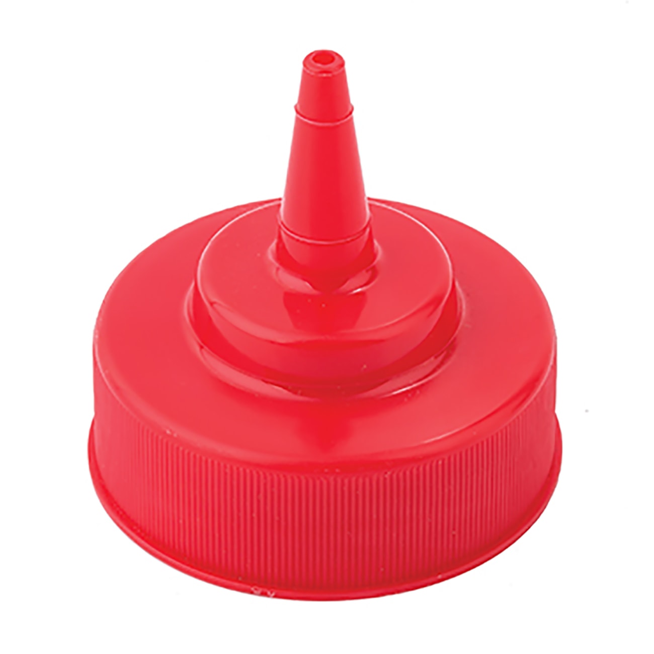 This red 53mm Standard Cone Tiptop™ is a replacement top for Widemouth™ squeeze bottles.