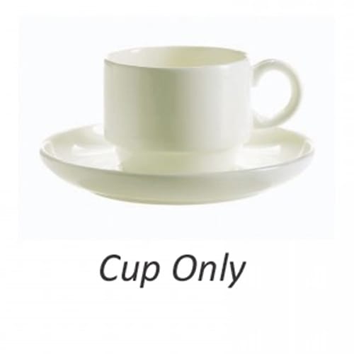 This Infinity 8.5 ounce coffee cup is simply beautiful. Rimless and stackable, it is a favorite of upscale hotels and banquets.