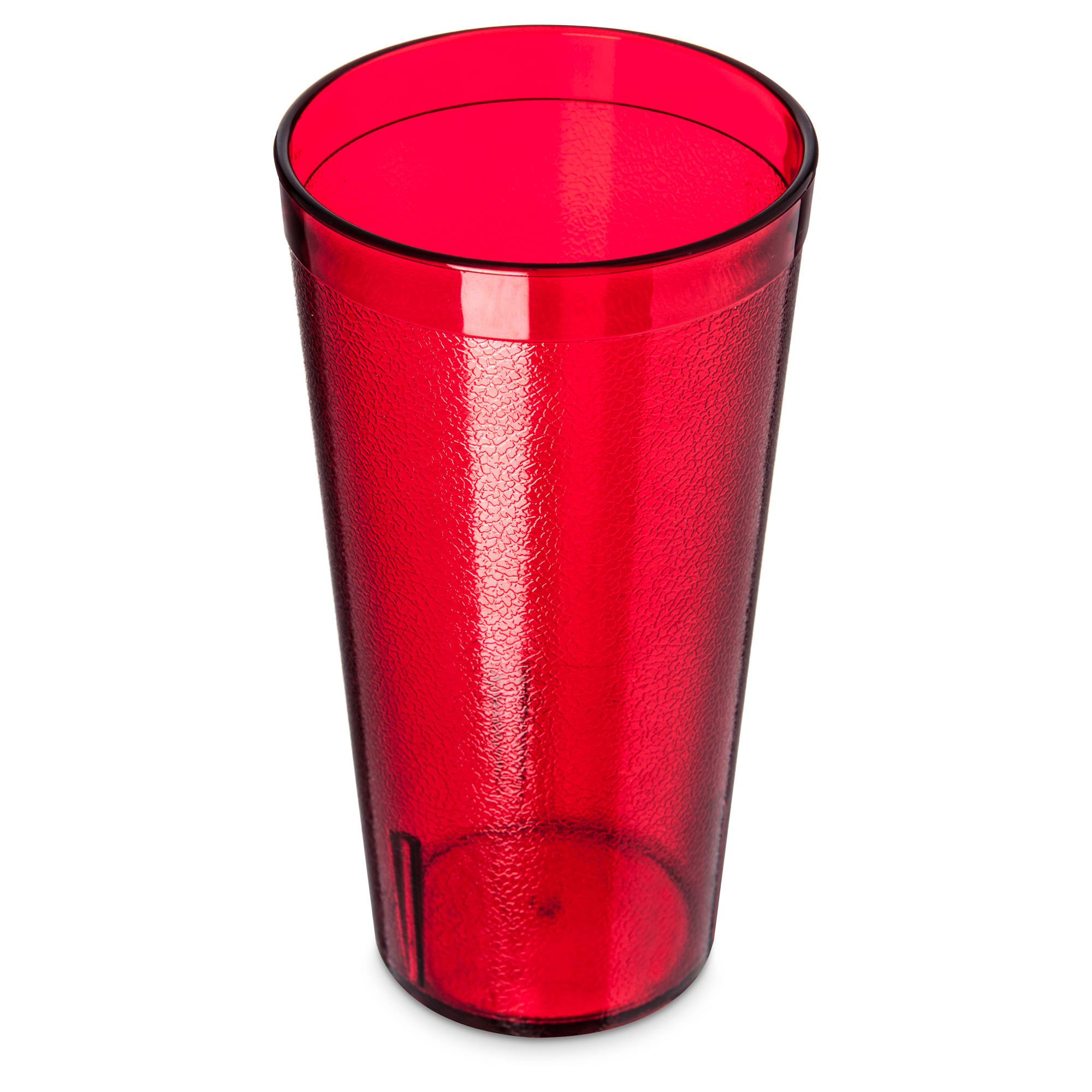 No more broken drinkware with Stackable™ tumblers from Carlisle®. This 20 ounce ruby tumbler has tapered sides to make it easy to stack and pull apart and the textured exterior hides wear and tear. Stacking lugs prevent jamming when stored and the SAN material is break resistant to extend longevity.