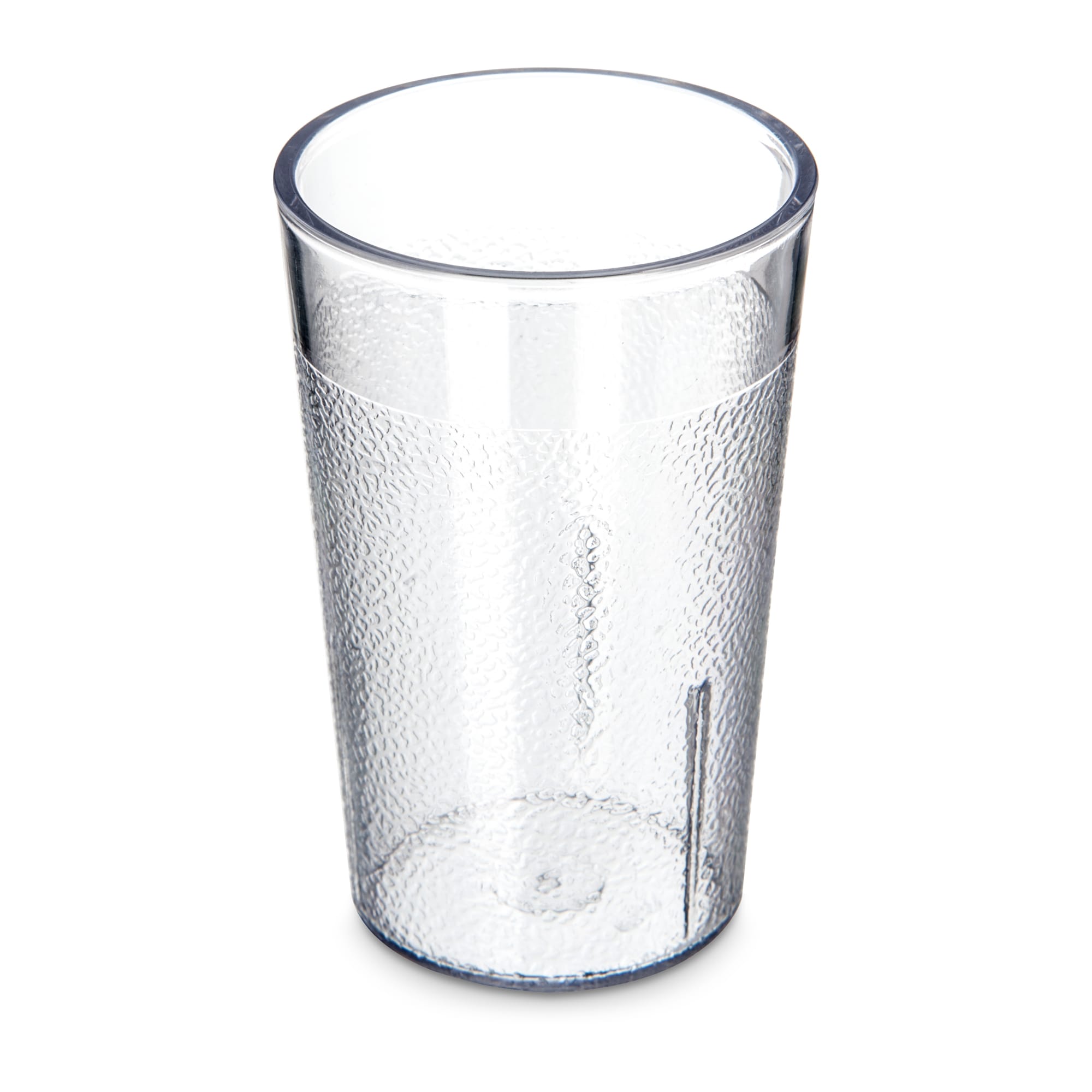 This 5 ounce clear tumbler is great for your early morning juice. It has tapered sides to make it easy to stack and pull apart and the textured exterior hides wear and tear. Stacking lugs prevent jamming when stored and the SAN material is break resistant to extend longevity. Use with the Carlisle DX1193ST8714 Classic disposable lid.