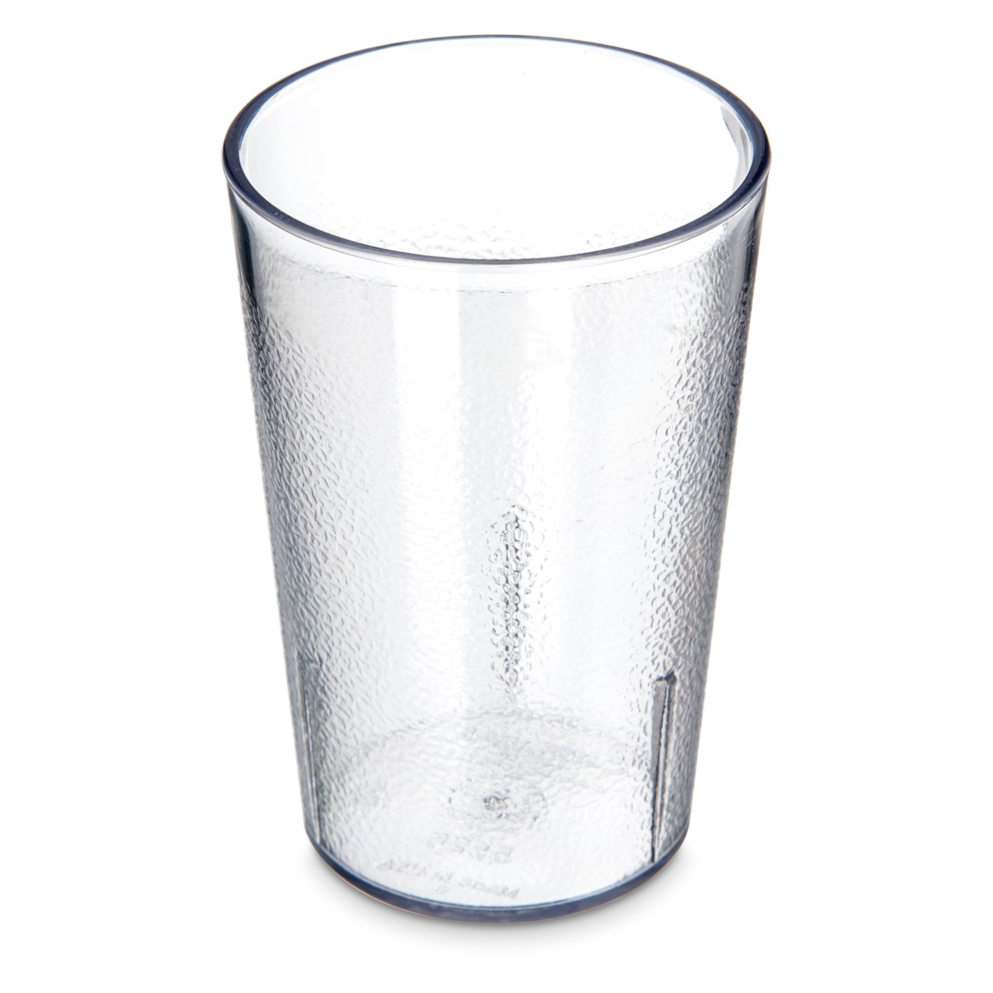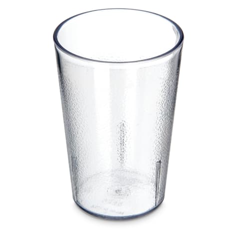This Stackable™ clear tumbler has a textured exterior that hides wear and tear. Stacking lugs prevent jamming when stored and the SAN material is break resistant to extend longevity. Can be used with the Dinex DX1191ST8714 disposable lid (Item 6102173).