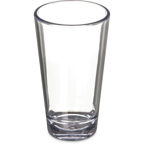 This Alibi™ pint / mixing cup from Carlisle® has a capacity of 16 ounces and is perfect for outdoor and poolside beverage service. It is made of lightweight, yet durable SAN plastic construction which is chip, shatter and break-resistant. The thick base of this clear cup mimics glassware and is dishwasher safe.