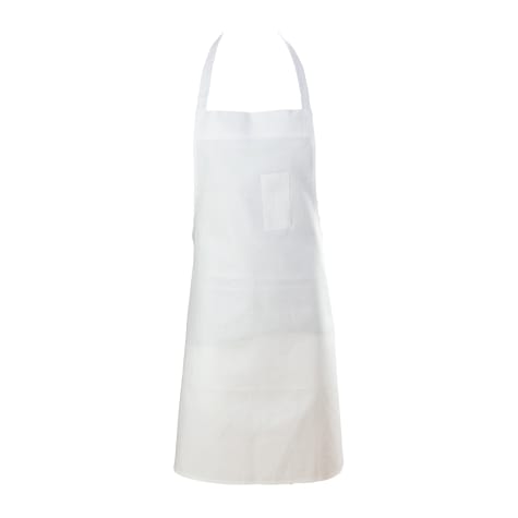 This Chef Revival® white bib apron is ideal for protecting users from food spills and every day kitchen messes. Its fabric is a cotton/poly blend and it features a pencil / thermometer pocket for storage.