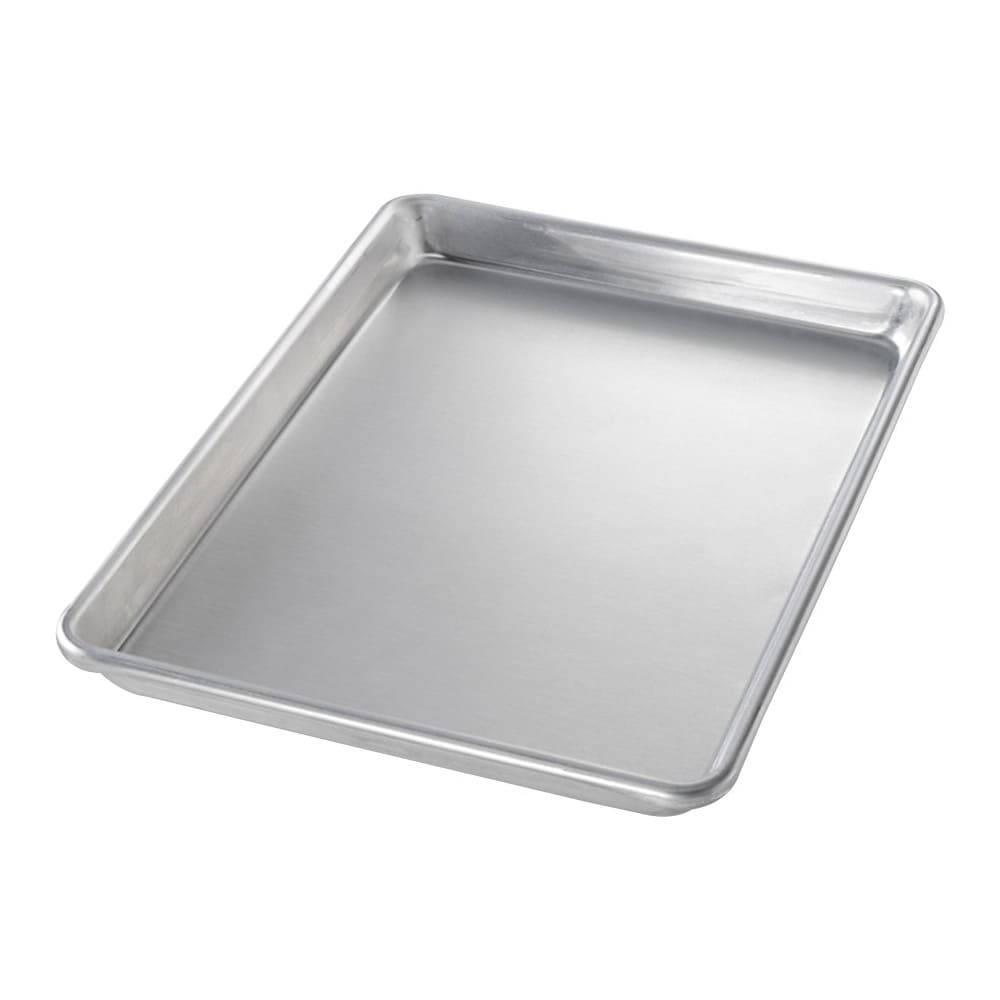 This Chicago Metallic Sheet Pan is a 1/4‐size pan and can be used to bake a variety of foods. It is made from aluminum and has a glazed finish.
