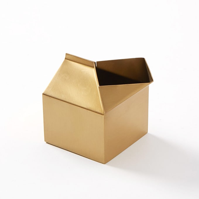 This 3-ounce creamer features a whimsical milk carton design, adding a playful yet chic touch to any table setting. Crafted from stainless steel with a satin gold finish, it is perfect for serving milk, cream, or other condiments. Its compact size ensures easy handling and portion control, making it a stylish and functional addition to your beverage service.