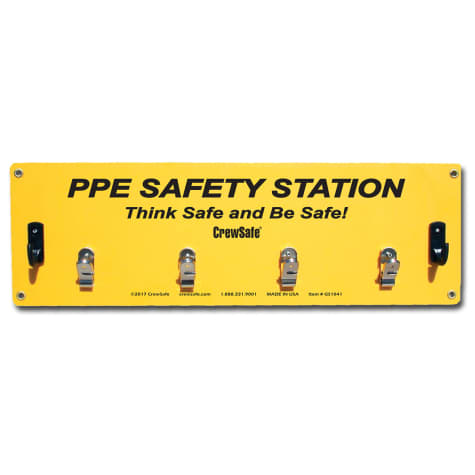 Keep your gloves and other personal protective equipment (PPE) organized and within reach with a CrewSafe PPE Safety Station. Designed with 4 heavy duty, wide mouth clips and 2 large hooks to keep our safety gloves and smallwares organized and safely at hand. Perfect for busy work stations where multiple safety tools are used.