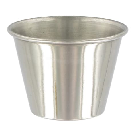 This 2.5 ounce sauce cup really shines! Made of durable stainless steel, this American Metalcraft sauce cup will last for years.