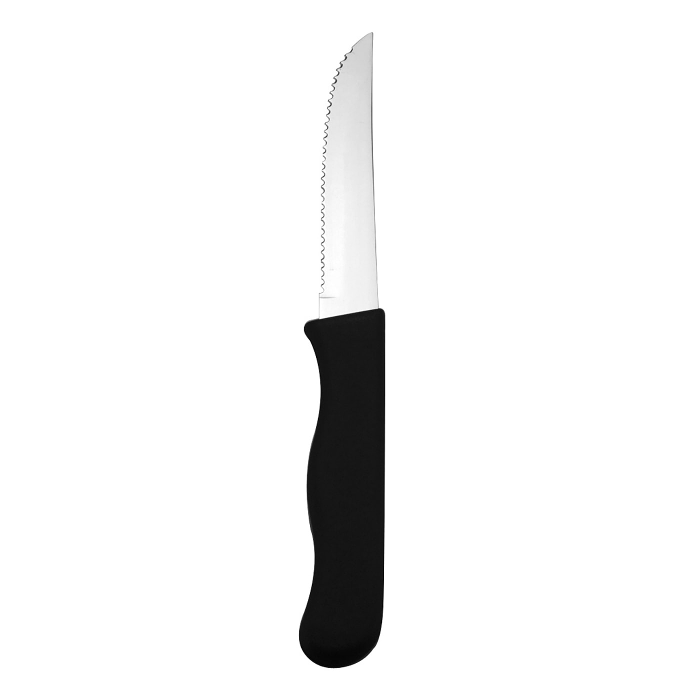 Add a touch of style to your table with this Titan steak knife. The molded black plastic handle is comfortable as well as classy looking.