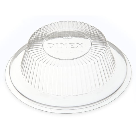 This Dinex® Classic™ Dome Lid fits their 5 Oz. Tulip Cup, model DXSWC507. It is made from clear polystyrene and is safe for temperatures ranging from 30°F to 190°F.
