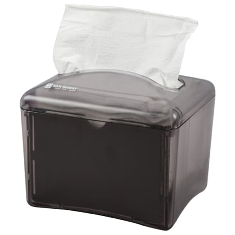 This San Jamar napkin dispenser has a compact size that saves space on your table. Plus, it dispenses napkins one at a time, saving money.