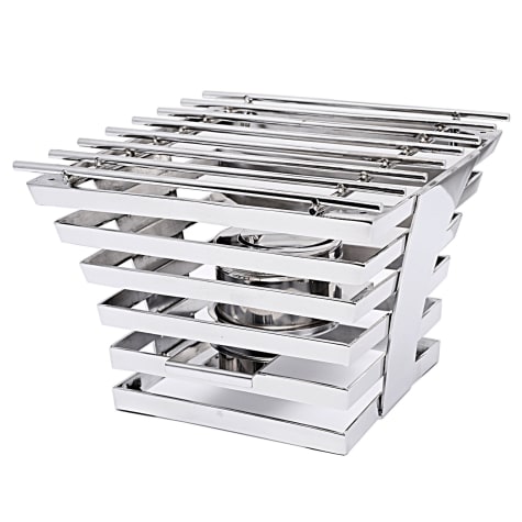 Escalate risers from Eastern Tabletop interconnects harmoniously for an impressive multi‐tiered displays. This 6 rung riser is great for hot or cold displays. It includes a cooking grate and chafing fuel holder and is perfect for buffets or catered events. This riser has up to 12 levels of tiered interconnecting possibilities and is constructed of durable stainless steel.